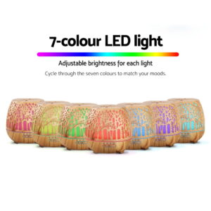 Enhance Your Home Atmosphere with this Devanti 400ml Aromatherapy Diffuser and Air Humidifier – LED Light and Ultrasonic Cool Mist for a Relaxing Environment. A large 400ml capacity & unique look for up to 12 hours of working time. – Versatile 4-in-1 unit: aromatherapy, humidifier, purifier, night light with 7-colour LED night light. – Easily switch between 7…